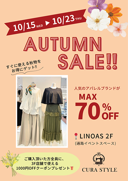 【10/15(水)~10/23(木)】AUTUMN SALE開催!!