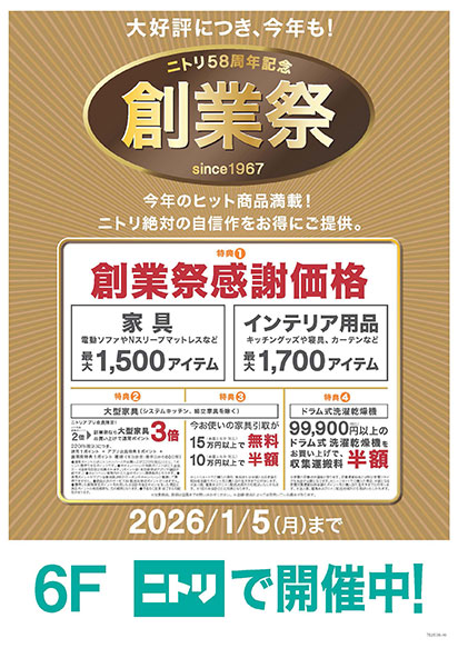 大型家具お買い上げで通常ポイント2倍→3倍獲得