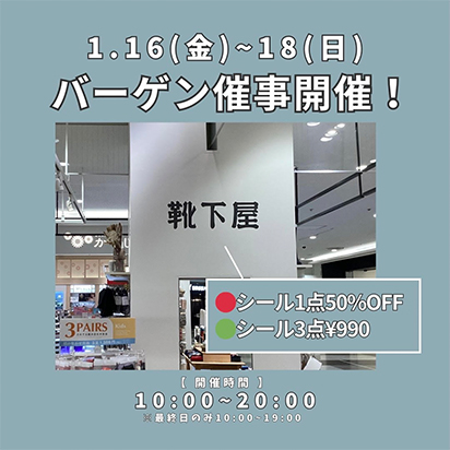 靴下屋店舗前でバーゲン催事を開催いたします👏