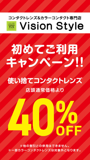 はじめてご利用の方は使い捨てコンタクトレンズが40%OFF